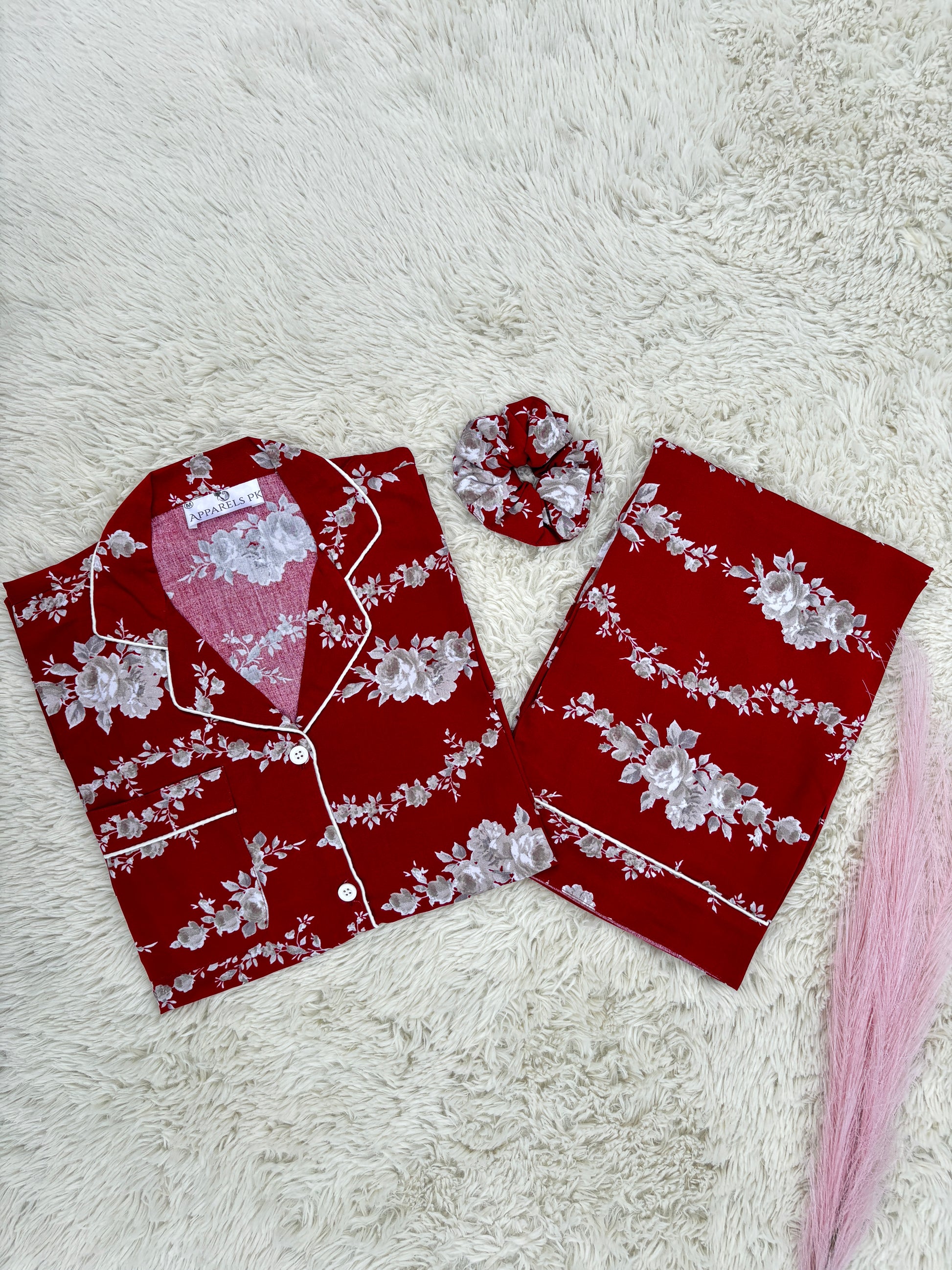 Wrap yourself in elegance with our Ruby Rose Charm linen PJ set. Made from premium organic fabric, this night suit offers breathability, beauty, and all-night comfort – perfect for cozy nights and stylish lounging. ❤️🌸