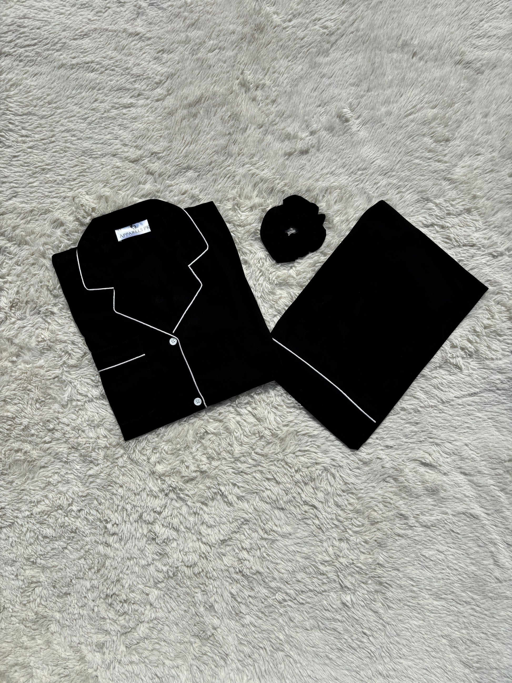 Embrace the essence of elegant simplicity. Our 'Shadow' set, crafted from breathable organic linen, features a deep black hue with classic white piping. This set offers a timeless and effortlessly chic look, perfect for those who appreciate understated luxury